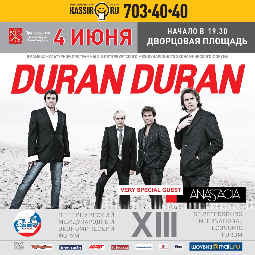 Группы Duran Duran и певица Anastacia выступят на Дворцовой площади северной столицы в рамках Петербургского международного экономического форума 4 июня, сообщает промоутерская компания "Планета Плюс". "Совсем скоро британские романтики Duran Duran подарят всем петербуржцам и гостям города свои мелодии и положительные эмоции. В качестве специального гостя с ними приедет певица Anastacia. Грандиозное шоу на Дворцовой площади, в программе которого - лучшие хиты группы и певицы, будет приурочено к открытию Петербургского международного экономического форума", - говорится в сообщении. Английская поп-группа Duran Duran сформировалась в 1978 году. Их стиль - это смешение диско, "новой волны" и лирической мелодики. Название позаимствовано у персонажа по имени Дюран Дюран из культового фантастического фильма 60-х годов "Барбарелла". Дебютный альбом Duran Duran продержался в чартах 118 недель, на сегодняшний день его тираж превысил 2,5 миллиона копий. Музыканты получили две премии Грэмми. Группа также поучаствовала в создании фильма из сериала о Джеймсе Бонде - агенте "007", написав в 1985 году главную тему A View To A Kill к бондиане. В 2000 году общее число проданных дисков Duran Duran составило более 60 миллионов копий. На счету "новых романтиков" 6 платиновых и 3 мультиплатиновых альбома. Anastacia приедет с британскими романтиками Duran Duran в качестве специального гостя. За небольшой рост - 160 сантиметров певицы, ее часто называют "маленькая леди с большим голосом". В 1999 году Anastacia победила на конкурсе талантов The Cut на MTV, и тем самым привлекла к себе внимание нескольких крупных звукозаписывающих компаний. Дебютный альбом певицы Not That Kind попал в десятку в восьми странах Европы и Востока и разошелся тиражом более двух миллионов экземпляров. Концерты на Дворцовой площади в рамках Петербургского экономического форума, который в этом году пройдет с 4 по 6 июня, уже стали традиционными. Раннее на главной площади города в дни форума выступали Scorpions и Pink Floyd. |