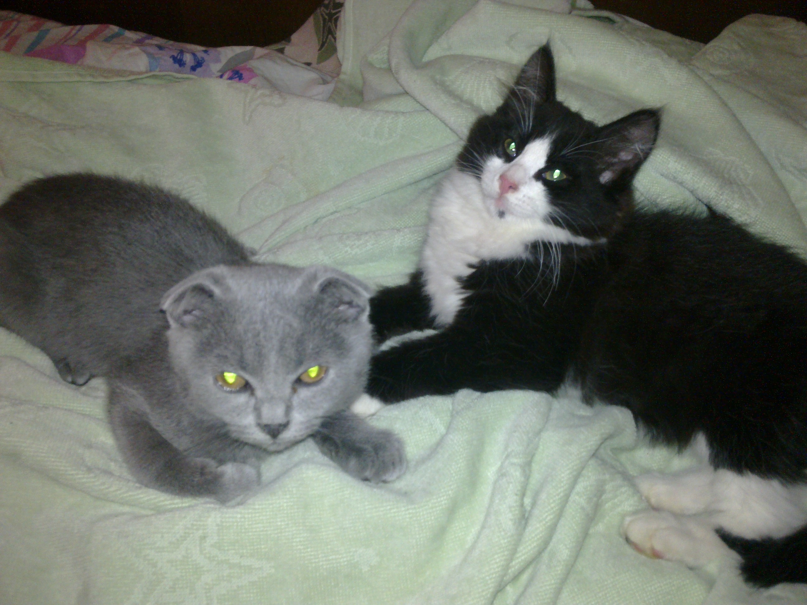А это мои....мелкие ещё..по 4 месяца...Марис - шотландец и Эста - дворянка...)))), а ещё рыбок скоро планирую...