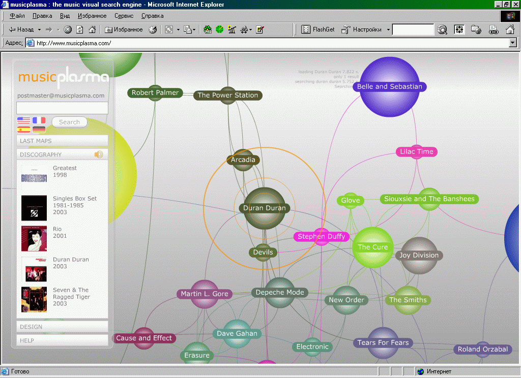 musicplasma : the music visual search engine - поисковик визуальной характеристики музыкальных групп.