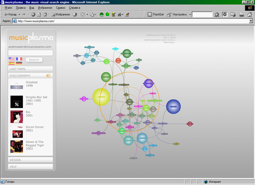 musicplasma : the music visual search engine - поисковик визуальной характеристики музыкальных групп. У меня почему-то не открылось (IMG:style_emoticons/default/unsure.gif) |