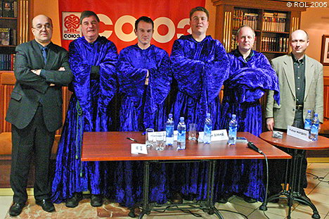 ЦИТАТА Gregorian никогда не слышали оригиналы своих кавер-версий 11 марта 2005 г. Пресс-конференция проекта Gregorian, посвященная первому приезду музыкантов в Россию, состоялась в магазине «Союз» на Страстном бульваре 10 марта. В общении с журналистами приняли участие Ричард Некстон, Роберт Фарделл, Мэттью Дэвид и Кристофер Тикнер. Обещанного продюсера проекта Франка Петерсона на пресс-конференции не было: музыканты предположили, что ему не сделали визу. Все участники проекта, исполняющего кавер-версии популярных композиций в стиле григорианских хоралов, еще перед началом общения с прессой прямо в зале переоделись в заранее заготовленные григорианские сутаны из ярко-синего бархата, а затем, накинув на головы капюшоны, проследовал в президиум. Журналистов интересовало, понравилась ли участникам Gregorian Москва, ведь они видят ее в первый раз. Музыканты не смогли дать развернутого ответа на это вопрос, так как у них много времени заняла дорога, и пока что у них не было возможности ознакомиться с достопримечательностями столицы России. Самый пожилой из восседающих за президиумом Кристофер Тикнер рассказал, что идея проекта Gregorian принадлежит продюсеру Франку Петерсону, он же и является ее идейным вдохновителем, поэтому последнее слово по поводу репертуара и других идей всегда именно за герром Петерсоном. Мэттью Дэвид заметил, что ему очень приятно внимание, которое их группе уделили в Москве. «Повсюду висит реклама нашего концерта – это очень здорово», - рассмеялся вокалист. Вообще все до одного «григорианцы» на пресс-конференции чувствовали себя очень расслабленно и смеялись буквально при каждом вопросе. Например, музыкантов развеселило мнение относительно возможной связи проекта с Сатаной и темными силами, так как, например, на последнем альбоме “Dark Side” есть песня под названием “Ave Satani”. В очередной раз захихикав, Тикнер заявил, что вечно все думают, что они как-то связаны с темными силами, но этих параллелей нет и быть не может. А пишутся григорианцы и вовсе на студии Angel («Ангел»). Как выяснилось, в большинстве своем участники пресс-конференции никогда не слышали оригиналы песен, кавер-версии на которые они исполняют (к примеру, “Ordinary World” Duran Duran, “Voyage, Voyage” Дизайрлесс и др.). Мэттью Дэвид признался, что ему не всегда легко работать в этом проекте, так как у него, да, впрочем, и у других вокалистов Gregorian, классическое музыкальное образование. Как отмечает агентство InterMedia, прессу интересовало, как относятся к творчеству Gregorian те группы, чьи песни они перепевают. Оказалось, что музыканты совершенно не в курсе, да это их и не особенно интересует. Работа в Gregorian не занимает все время у вокалистов, в частности, последний альбом они вообще записали за четыре дня, поэтому они не гнушаются принимать участие в других проектах, к примеру, петь в классических хорах. Костюмы участников Gregorian стоят тысячи фунтов, а делаются они мастерами Сары Брайтман, которая периодически выступает с группой под именем Вайолет. По окончании пресс-конференции состоялась автограф-сессия, во время которой музыканты радостно расписывали многочисленные листочки столпившихся вокруг них восторженных поклонников. Несколько дисков они подписали специально для пользователей РОЛ. Фото: Никита Павлов Ресурс: www.rol.ru |