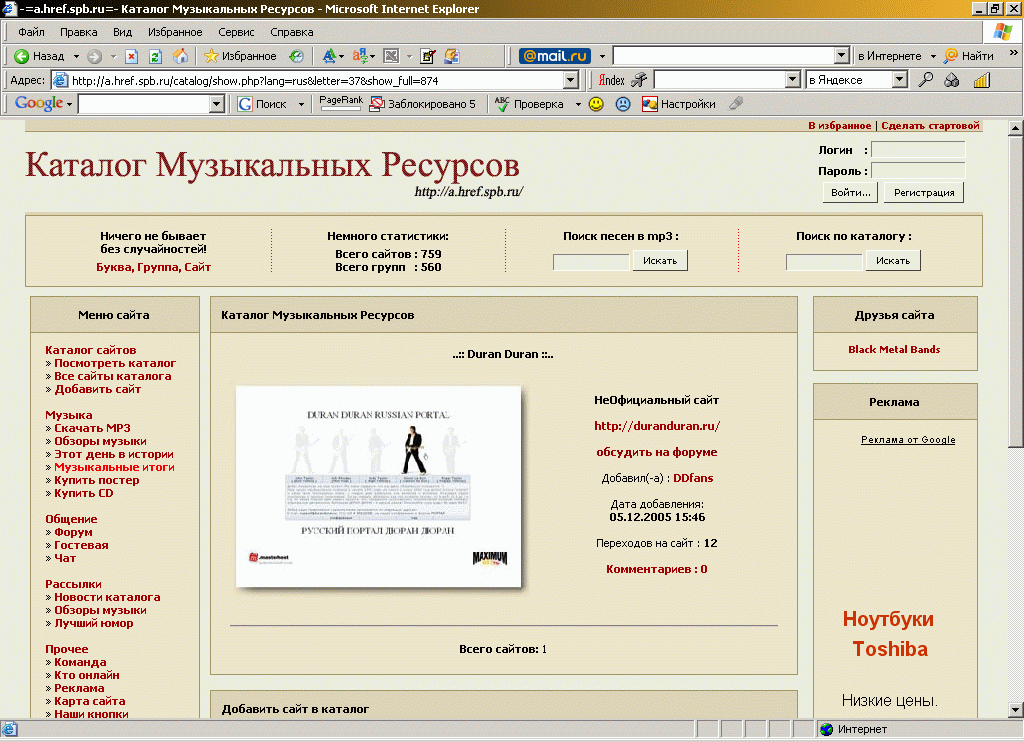 -=a.href.spb.ru=- Каталог Музыкальных Ресурсов - но..., НЕпросто "музыкальный каталог" и НЕпросто "ресурсов", а каталог со скриншотами(с превьюшками) самих сайтов!