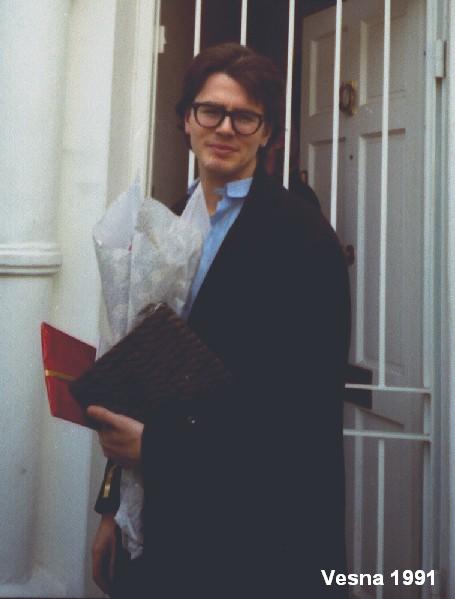 Где он стоит в белой рубушке. )))