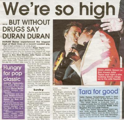 I: I gotta tell you John, there’s something that happens when the girls hear of Duran Duran. I was talking to (a coworker), and she’s a HUGE fan, and even has written her dream of marrying Simon when she grew up, and you know, YOU were MY favorite, so I was just wondering, you know, between you two, who got the most chicks?