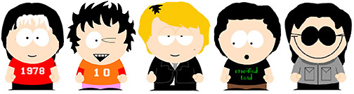 Здесь вроде просто нарисовали в стиле этого мультика, причем эта картинка была с сайта под названием что-то типа'нарисуй сам своих любимых героев в стиле South Park' , и давался набор глаз ,носов,причесок,костюмов и.т.д. Жалко саму ссылку потеряла,очень забавный сайтик.