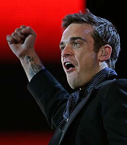 Робби Уильямс успешно презентовал свою новую пластинку «Intensive Care» в самом сердце континентальной Европы, на берлинском стадионе «Велодром» - невзирая на то обстоятельство, что незадолго до концерта, во время очередного футбольного матча, заядлый спортсмен Робби умудрился серьезно повредить руку.